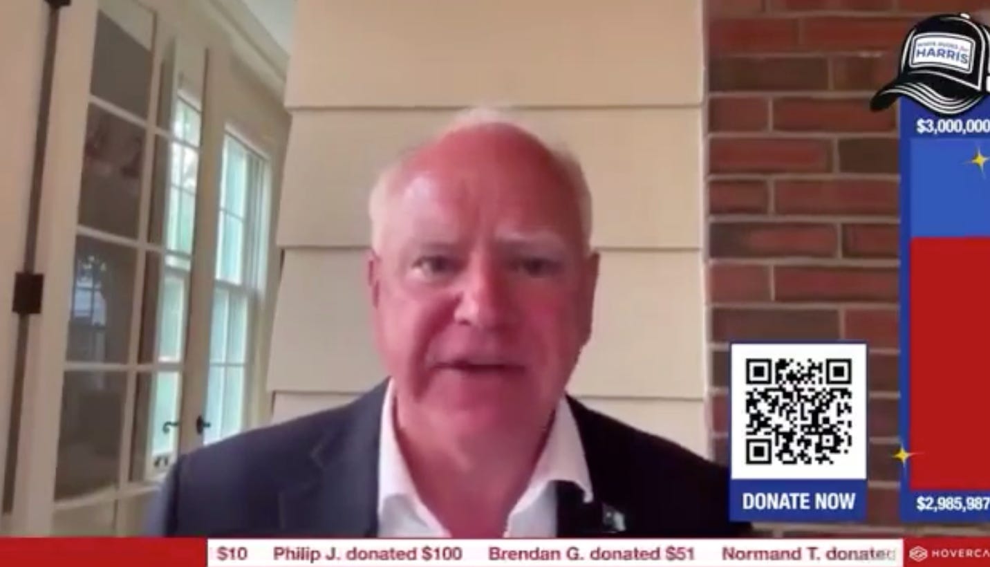 Walz does seem to have a certain attractive, folksy, matter-of-fact, Minnesota-nice-without-the-niceness quality when he goes on TV to pit bull for Harris. This clip of Walz, tweeted by David Hogg, was one of the ones that went viral: