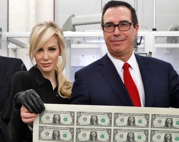 And speaking of the dumbest fucking assholes in the world who are inexplicably in charge of our country, check out Treasury Secretary Steven Mnuchin, a billionaire like his buddy Wilbur, explaining how jobless numbers "are not relevant."