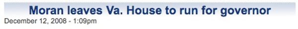 Moran Will Run For GovernorSara K. SmithDec 12, 2008ShareOf course, Virginia has a distinguished history of being run by morans. [ WTOP ]Want to just donate once?PreviousNext