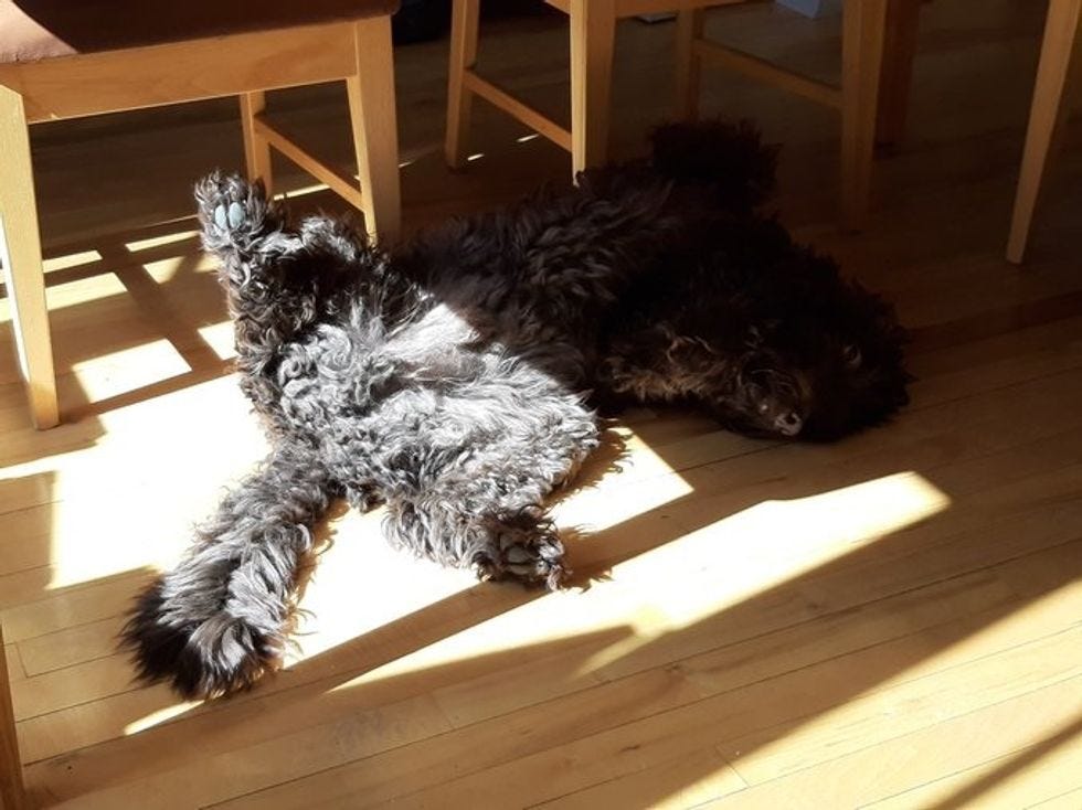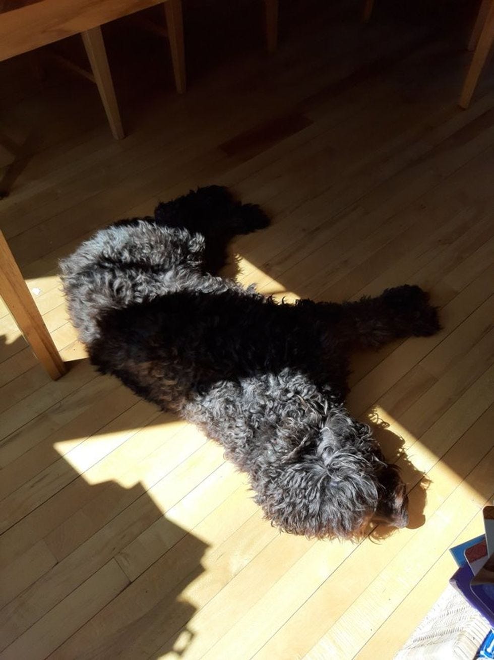 Many good dogs lazin' around in sun pics in that thread, including this'n from Carleton U physics prof Andrew Robinson,whom we have now followed because look at #MontyThe Doodle !
