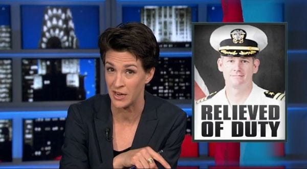 Rachel Maddow leads into this developing story about the firing of the head of the Navy's base at Guantanamo Bay with a quick overview of the David Petraeus affair, noting that Petraeus lost his job as CIA director only after an investigation into what seemed an unrelated matter, and also noting that we still don't know whether Petraeus "will be criminally charged with disclosing classified information to the woman he was shtupping while he was head of the CIA." We think that usage might be a first for cable news, but some smartass with Nexis/Lexis will probably correct us.