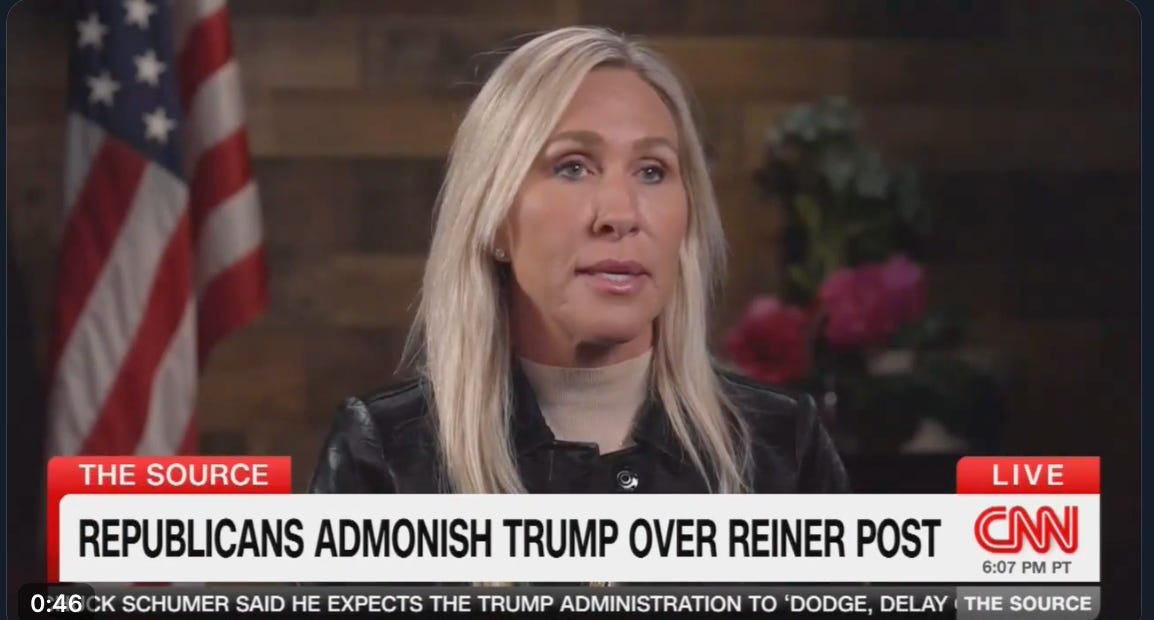 Most importantly, though, for our purposes, is that Greene told Kaitlan Collins in this interview that “the dam is breaking” when it comes to Republicans peeling away from Trump. It’s funny, she said this before the Republicans revolted against Mike Johnson on that Obamacare vote today.