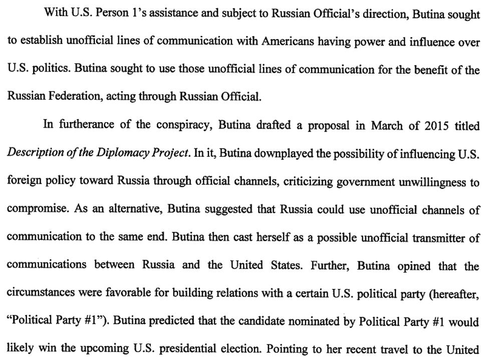 Butina pleaded to one count of failing to register as an agent of a foreign government (we'll give you three guesses which one!) and agreed to fully cooperate with the prosecutors, making her the first Russian witch to plead guilty in the Mueller hunt. Her statement of offense describes a conspiracy where Butina, her handler Alexander Torshin, then-Deputy Governor to the Russian Central Bank (who has curiously just retired! ), and her boyfriend US Person 1, AKA Paul Erickson, would cozy up to Republicans in order to influence America's foreign policy.