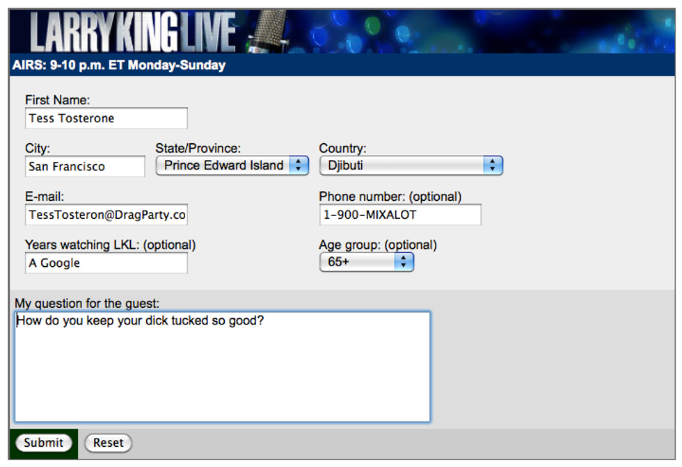 Ha ha, of course not, it's just going to be old Larry throwing Annie softballs like "Ann, where did those dirty HomCon fags touch you?" Luckily there is a way for you to help Larry interrogate the Republican Judy Garland.