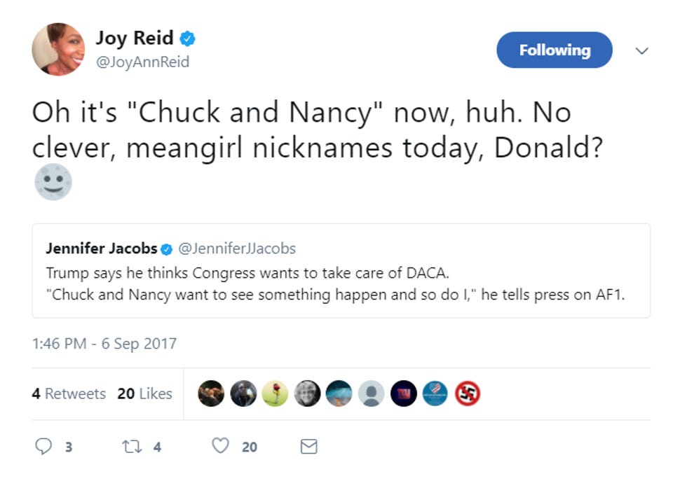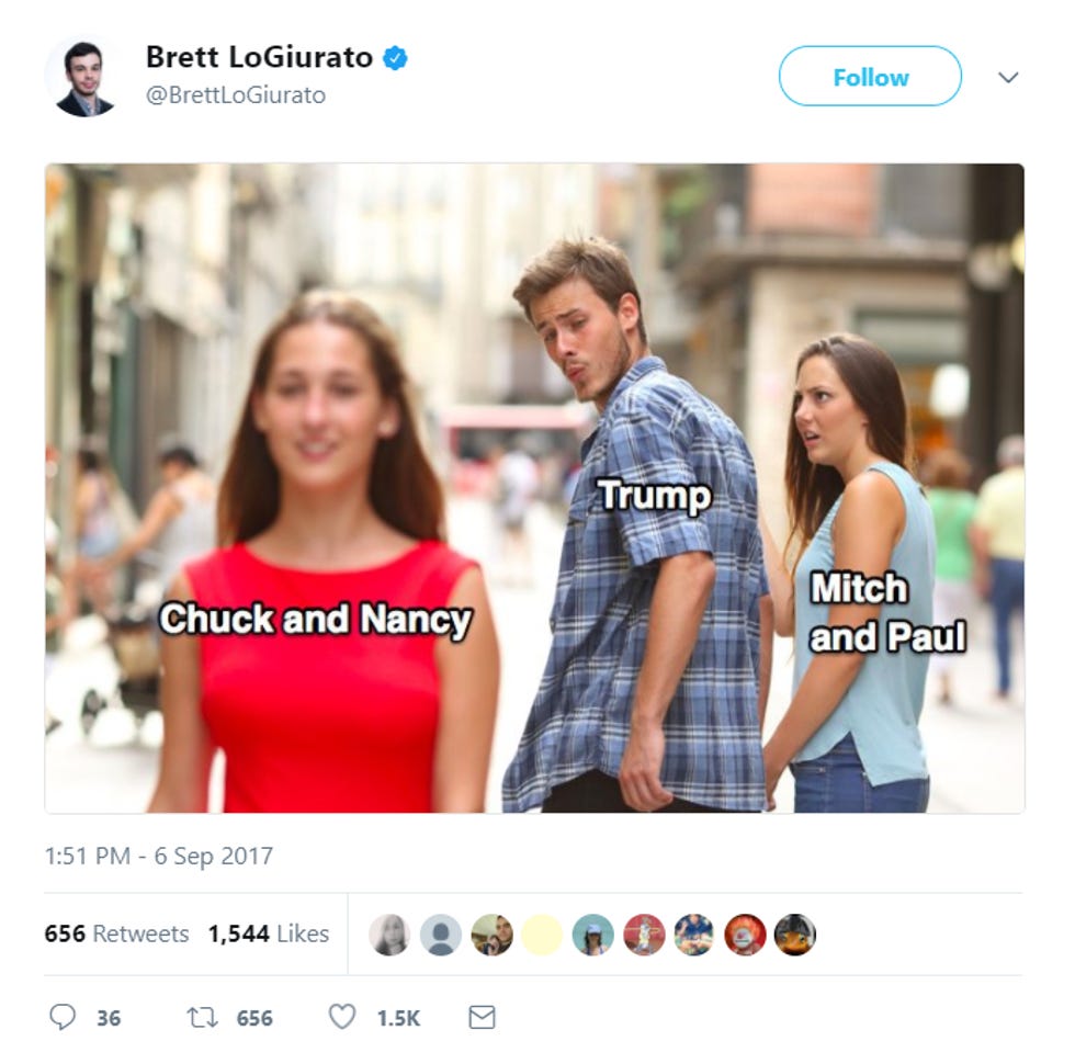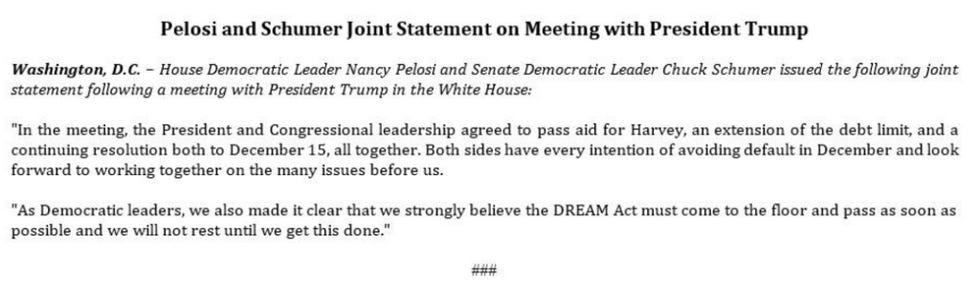 And Donald Trump right now, September 6, 2017, speaking via a statement from Chuck Schumer and Nancy Pelosi: