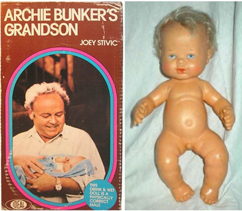 Those of you having a sense of deja vu here may remember the similarly silly fuss almost forty friggin' years ago when Gloria and Michael on All in the Familyhad them a babby, and when Archie Bunker changed little Joey's diaper, American TV audiences saw a baby peen for a microsecond or so. For reasons that make sense only to marketers, that moment was memorialized in the now pretty-collectible "Joey Stivic Doll," manufactured in 1976, which brought us the term "anatomically correct" in the first place.