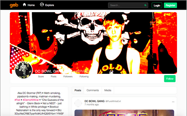On Gab, the social network forpeople who love free speechNazis, Teddy Clark posted as "DC Stormer," and Jeffrey Clark posted as "DC Bowl Gang" ( link to archive ) -- a reference to the bowl cut sported by Charleston church shooter Dylann Roof. Jeffrey Clark's profile description reads:
