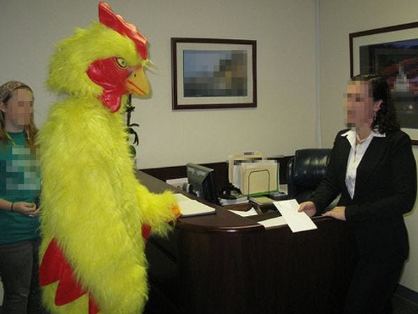 Nobody in a chicken suit this year? UNFAIR TO BLOGGERS!