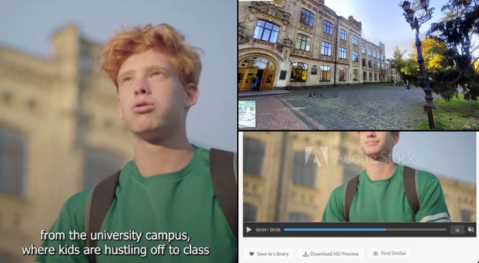 They found “young Caucasian handsome man closing laptop, sighing, and looking away at sundown” on Adobe and then used Google Maps to pinpoint the location. Hopefully Russian special military operation forces won’t be pinpointing it themselves.
