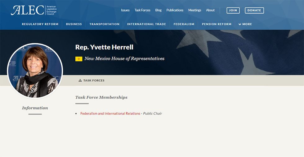 In a sad twist of irony, Herrell is the chair of ALEC's Federalism and International Relations task force where she pushes for the kind of trade policies that are in direct opposition to Trump's trade war. She doesn't have any bio on their website, which we suspect means she's not important enough for anyone to care about. Lucky for her, ALEC still supports gun-humping, union busting, and voter purging, so she'll have plenty of things to pivot towards in order to avoid contradicting herself.