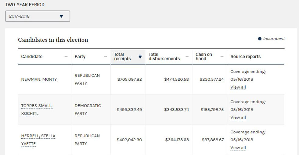 According to the most recent FEC reports, Torres Small currently holds the fundraising lead with $155,798 in cash on hand to Herrell's $37,868. Much of Torres Small's cash has been pouring via progressive PACs large and small, and she's going to need it in the coming months as the local Republicans have already attempted to brand her as Nancy Pelosi's scarfless clone.