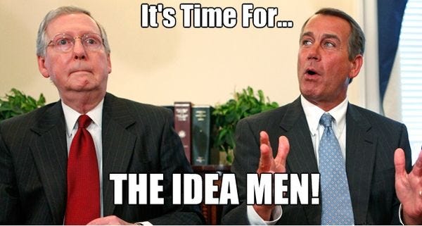 Back in November, Idea Men John Boehner and Mitch McConnell conserva-splained at America how they would fix Congress now that they'd won the midterms. These Bold, Robust Ideas were intended to unite the party and carry forward the Will of the People, who had Spoken in November.