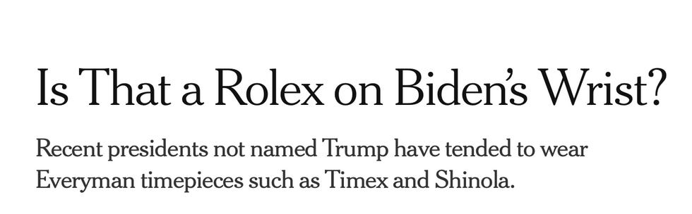 The New York Times continues its relentless investigation into whether President (damn right) Joe Biden is sufficiently broke ass to lead. Last week, the Timesdropped a thrilling expose on "Middle Class" Joe's Peloton bike, and just a couple days later, the paper of Robin Thicke records was back with another daring “scoop."