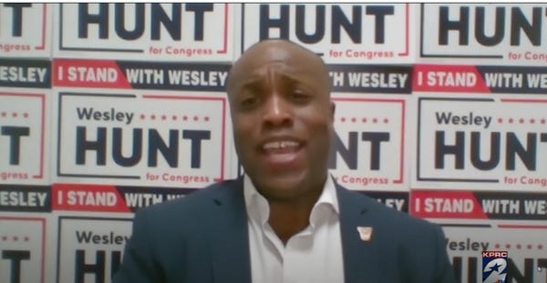 The pictured Republican above is Wesley Hunt, who is set to win election in Texas this year and exponentially increase the number of Black Republican House members from two to three. A few more election cycles like this and their carpool will need a minivan.