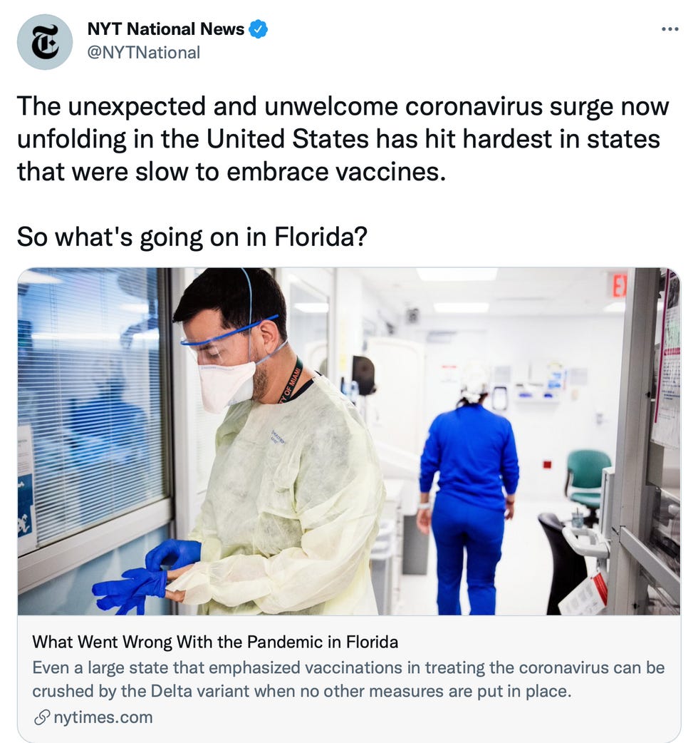 The headline for the article from Patricia Mazzei, Benjamin Mueller, and Robert Gebeloff asks “What Went Wrong With the Pandemic in Florida." OK, let's solve this locked-door mystery, shall we?