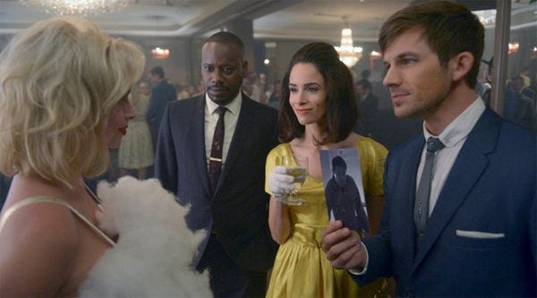 Each week, the trio of time travelers tries to catch up with bad guy Garcia Flynn (who may not really be evil!! -- this is the show's idea of dramatic tension), who's stolen a time machine so he can screw up history for unknown Larger Purposes (which may not really be evil!, see above). In the most recent episode, "Atomic City," our heroes go back to 1962 to try to stop Flynn from stealing a nuclear McGuffin in Las Vegas. The good guys rescue Judith Campbell (later better-known as Judith Exner ) from the Big Bad, so historian Lucy, the show's Chief Exposition Lass, explains to the team that Judith was the mistress of both JFK and mafioso Sam Giancana, between whom she supposedly passed messages so Kennedy could plot the overthrow of Castro. Not that any of the conspiracy-theory stuff comes up in the show or in Ashford's review; mostly, he's simply disgusted the show would portray Campbell's sleeping around as some kind of "empowerment":