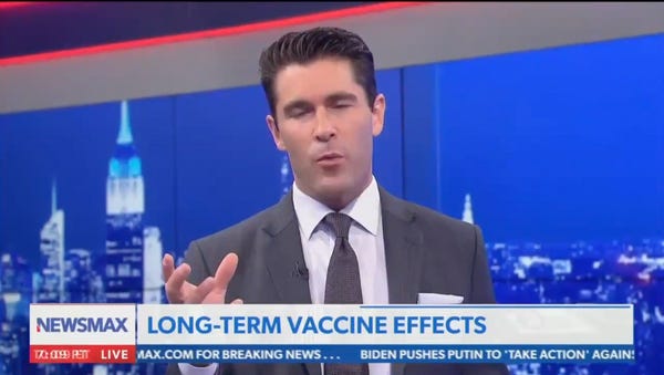 Unless — hear me out on this — he's actually a double agent of some kind and he's using reverse psychology to get anti-vaxx people to take the vaccine. I mean, if you really think about it, is there a better way to convince the Newsmax audience to get the vaccine than to tell them that maybe there shouldn't be a vaccine at all and the virus should run its course and kill whomever it kills ... for evolutionary purposes? I am not sure there is. Unless you tell them that those of us on the Left think only we should get the vaccine, on account of how we think we're better than them.