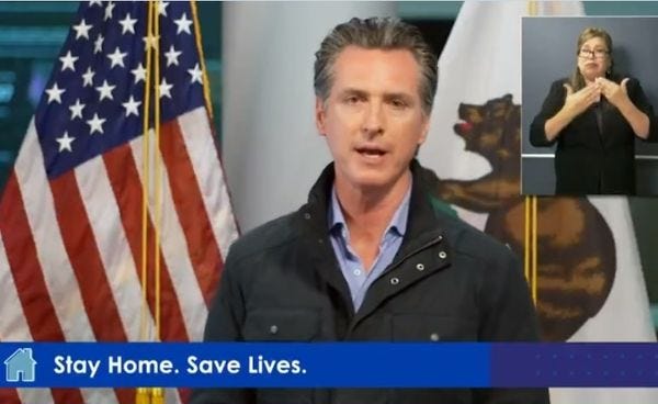 But since the federal government has decided we now live under Articles of Confederation that were never replaced by an actual federal government, it's good to see Newsom and other governors working together to act like a national problem needs a national solution, not 55 states and territories and FEMA all fighting each other over masks, gowns, ventilators, and, for folks in Mississippi, prayer cards.
