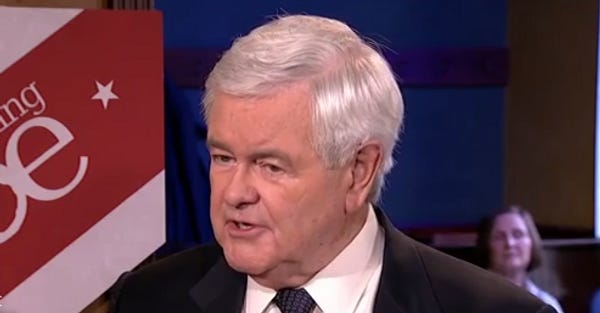 And we were sort of prepared to give Newt Gingrich a tiny little pat on the bottom for being willing to acknowledge the truth, but we guess he's squandered that now, so fuck Newt Gingrich with a bag of sticky butterscotch candies, that's what we say.