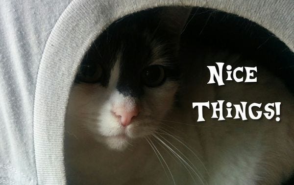 Here's some stuff I've enjoyed reading lately. Keep in mind, of course, that it's possible to really enjoy reading something that isn't necessarily delightful, but is well written or provocative or just plain takes you somewhere you weren't quite expecting, so some of these may not be "nice" the way a puppy booping a cow's nose is. But I think they're worth reading! (A couple of them are just plain neato, though.)