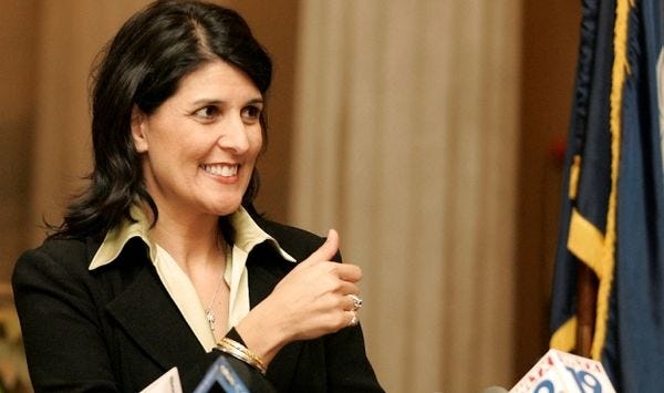 We would like to say from the the outset that we do not hate Nikki Haley. She is easily the most decent and intelligent hire Donald Trump made for his administration, and to this day we don't understand why she allowed her marginally decent name to be shat on by taking a job in the Trump regime. Yes, she is an asshole sometimes, but she also actually speaks up at the United Nations for such quaint things as human rights, unlike literally every other person in the administration, so she's not ALL bad.