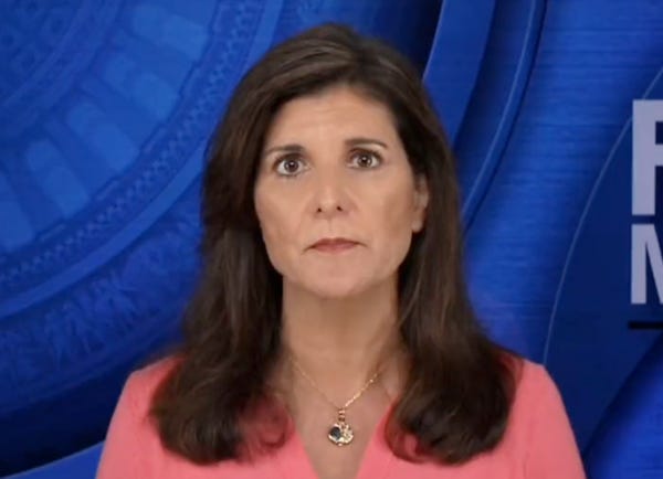 Haley probably can't come directly out and say that this will be fabulous for him and will actually thrill all of the little MAGA creeps, least of all because she is also running for president and needs their votes, which she won't get because the only people who think Nikki Haley is a huge political threat to anyone are sheltered centrist pundits.