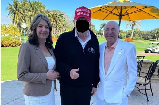 Not that it was the childless dog lady’s first visit to the MAGAverse this month; Smith also joined “Shark Tank” blowhard Kevin O’Leary in Palm Beach to ostensibly pitch the importance of unimpeded bilateral trade relations. There’s no record of the chat — not unlike the time the president had a performance review with Putin in Helsinki back in 2018 and the translator’s notes were destroyed — so we’ll have to give her the benefit of the doubt she didn’t promise him Alberta oil wouldn’t be banned for export or subject to levies as part of a domestic response if we don’t build a wall Mexico might be open to chipping in for and/or peacekeeping our way to ending the War on Drugs.