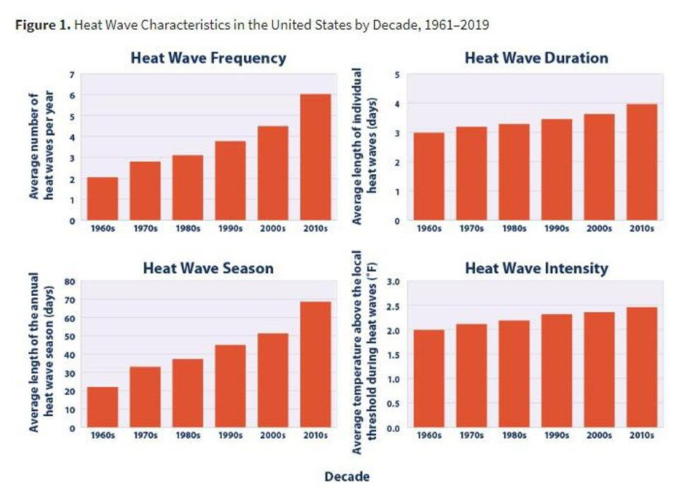 There's sobering information in every damn category, like these charts on heat waves in the US, based on 2021 figures from the National Oceanic and Atmospheric Administration: