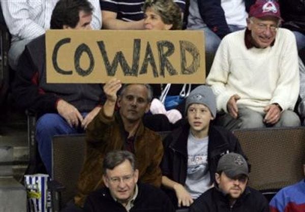 Democrats are supposed to be the good guys, not the coward who acts tough, then turns out to be more scared than Rick Santorum caught nekkid in the third stall of a San Fransicso gay bar. You can all drink dicks.