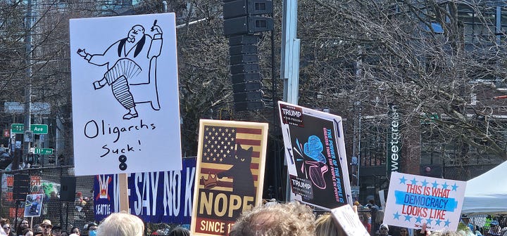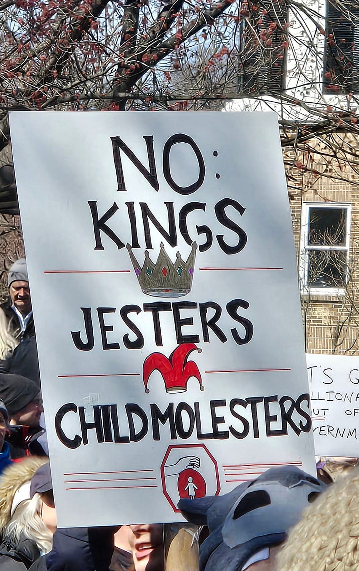 NO KINGS: Pictures From Wonkette Readers All Across This LandWe are ready for the fight!ziggywiggyMar 30, 20269837311ShareSeattle. Pic by weejeeSeattle. Pic by weejeeCLICK ON EACH PIC TO ENLARGEGranby, Mass. Pics by Stanta KnowsEast Mesa, AZ. Pic by Dexter MathorphanN. Ridgeville and Vermillion, OH. Pics by Morgan XHanover, NH. Pic by Larry SchmittRichmond, VA. Pics by Say It With WookiesKingston, NY. Pic by Terse NursePittsburgh. Pics from SterwonkWashington D.C. Pic from Birb GeneralLakeland, FLA. Pics from The WandererChampaign, IL. Pics by GarnetSonoma, CA. Pic from The Real PamboOneonta, NY. Pics by ZyxommaPic from Let Me Sum UpChicago, IL. Pics by Tetman CallisPic by Ivory RabbitFort Pierce, FLA. Pic by cmd Human ScumDurham, NC. Pics from Plain MariePortland. Pics by Ill-AdvisedMorristown, NJ. Pics by Weeping Angel-Radical Left ScumLittle Rock, ARK. Pics by PaulomaticShaker Heights, OH. Pic by ziggywiggyDetroit. Pics by ShypixelDetroit. Pics by Rebecca and Melissa. Note Donna Rose with RESIST: HANDS OFF sign. Subscribe to Wonkette, for love or money! SubscribeOPEN THREAD, SHARE YOUR OWN!Previous