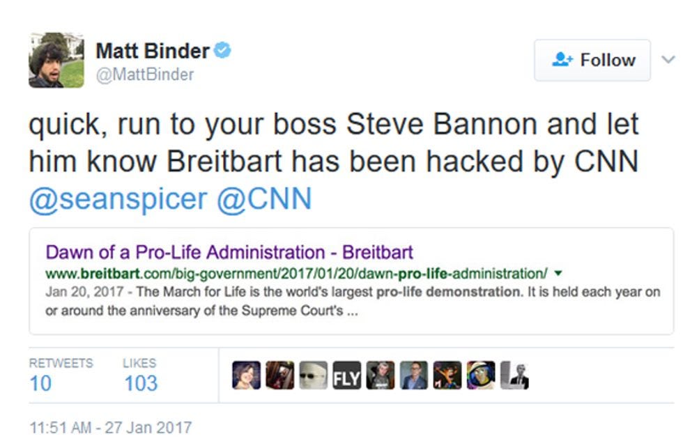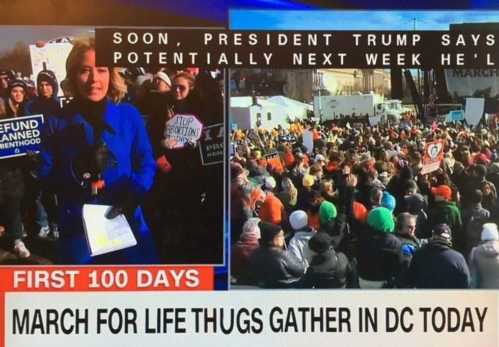 Sean Spicer, apparently emboldened by his good buddy Steve Bannon's declaration that the Trump administration is at war with the media all the time now, is very, very upset that CNN would go and call people attending the anti-abortion March For Life "Demonstrators." We have no idea why he finds that word problematic, since it's a perfectly accurate, value-neutral description of what people do when they are "protesting" or "demonstrating." As several replies to Spicer indicated, it's how the March For Life Website describes its own event: