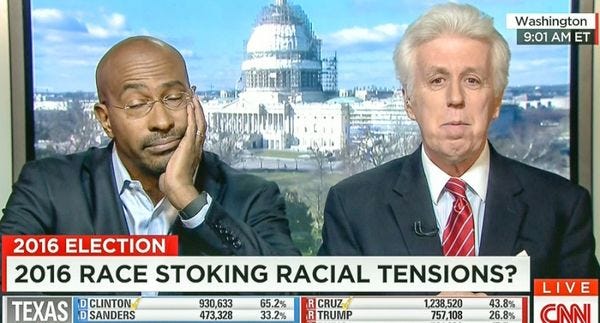 The internet was abuzz all Wednesday with reports of an Epic™ confrontation between two CNN pundits on Super Tuesday: Van Jones (a Democrat) and Jeffrey Lord (a Bag of Assholes). After Lord insisted Donald Trump had disavowed the KKK "many, many, many, many times" and that Democrats were just trying to score political points by making a big deal out of Trump saying, "new phone, who dis?" when confronted by Jake Tapper, Lord and Jones got into it.