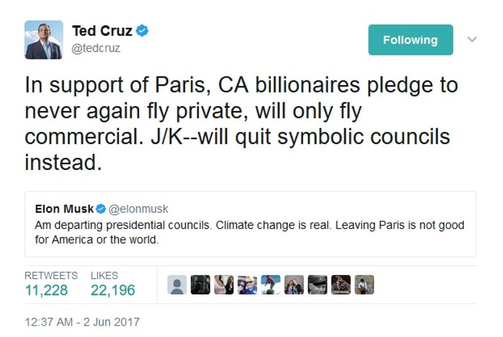 Ted Cruz had his own thoughtful comeback to Elon Musk, explaining that nothing the man says can be trusted because Musk is a huge hypocrite: