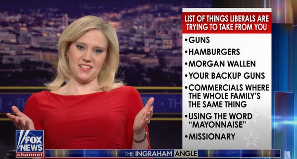 I only watched the Ariana Debose segments of this season’s "Saturday Night Live," but apparently Kate McKinnon made fun of professional terrible person Laura Ingraham last week, and the Fox News host was deeply offended. A sense of humor is just one of many positive traits Ingraham lacks.