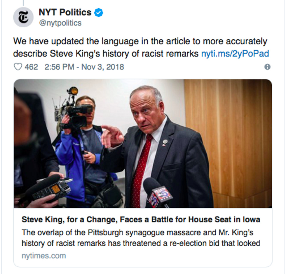 The Times later deleted this tweet and replaced it with one that is not substantively better.