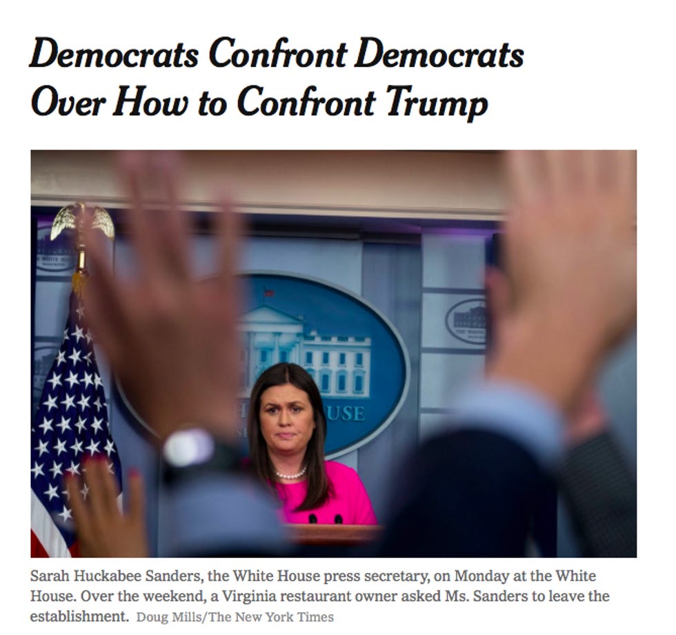 Sarah Huckabee Sanders is a Disney villain (and not one of the cool ones), so it wasn't surprising that a restaurant owner would want her off the premises. Actual citizens rejecting Trump's cronies should be compelling evidence that the public's turned against his administration. Yet this wasn't covered as a slam-dunk for Democrats and liberals.