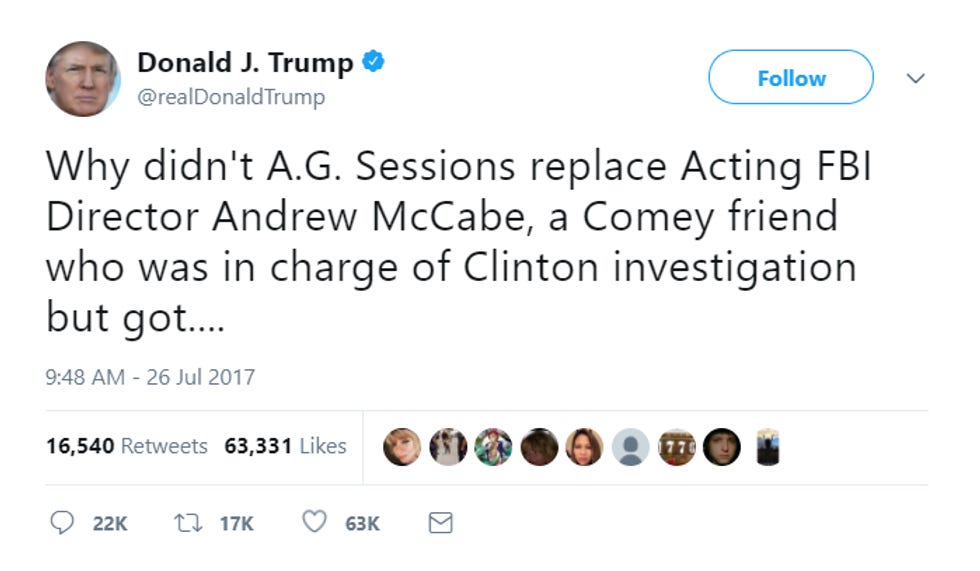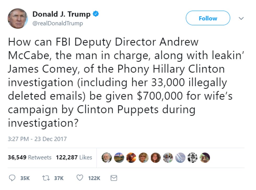 Here is some shit Trump has tweeted about McCabe: