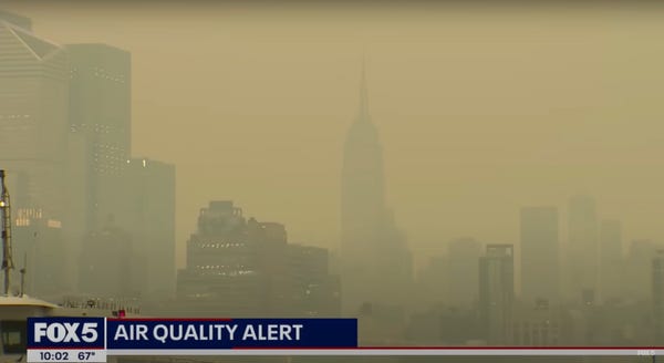 There were also extensive forest fires last week in Quebec and Ontario. As a result, the air quality in Toronto has become so polluted that officials warn residents against strenuous outdoor activities, unless they enjoy hacking up a lung. Smoke density is expected to only worsen by Thursday morning.