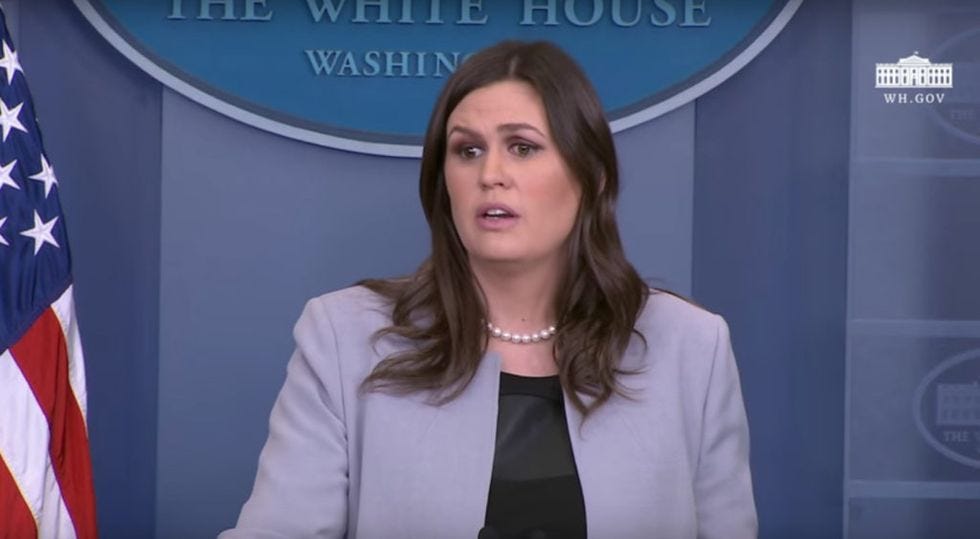 RUH ROH! Guess Ouachita Baptist University didn't prepare Sarah to talk about pornstar payoffs. We're not sure what Sanders could have said to maintain the fiction that Trump never had sex with Daniels, never paid her off, never signed the Hush Agreement, AND ALSO was victorious at the arbitration hearing. But this wasn't it!