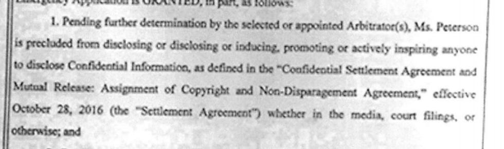 Sorry it's hard to read. It says, "Here is a legally dubious prior restraint on your speech. I have zero authority to enforce this order, and a real court would probably spend 10 seconds cackling before dismissing it. Anyway, even though everyone already knows you had sex with Donald Trump, don't tell anyone else about it." Well, more or less.