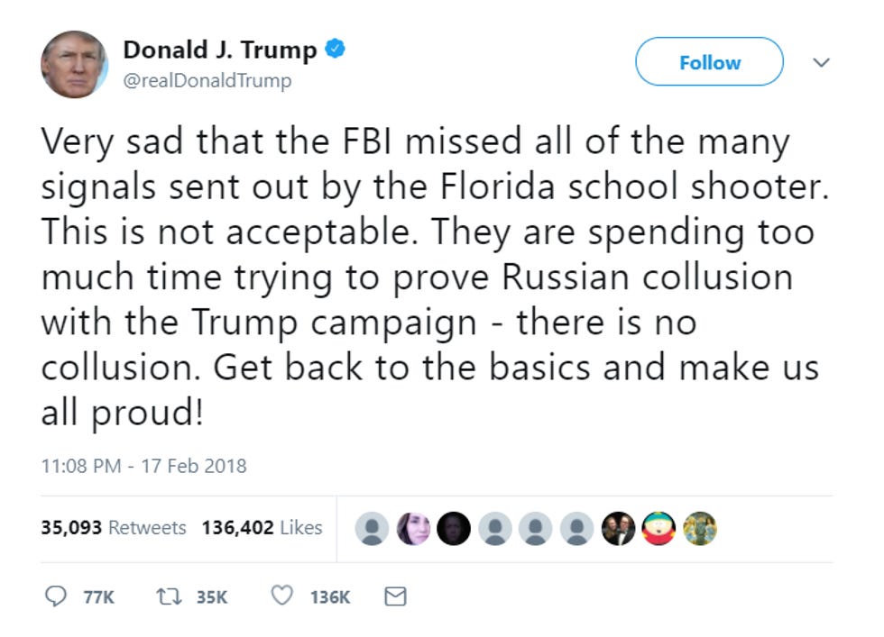 Hey, was Trump joking when he blamed the school shooting on the Russia investigation, because that shit is CRAZY?