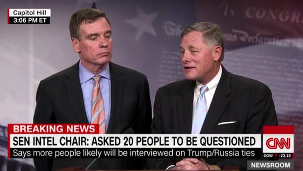 We had such great hopes for the Senate Intelligence Committee, when its leaders Senators Richard Burr (R-NC) and Mark Warner (D-VA) gave a joint presser announcing that their investigation was going to be mature and bipartisan and not full of the dumbass hijinks of the House Intelligence Committee. This is the Senate, dammit, where they don't act like a bunch of five-year-olds. Senators are required by law to act like they're AT LEAST 12.