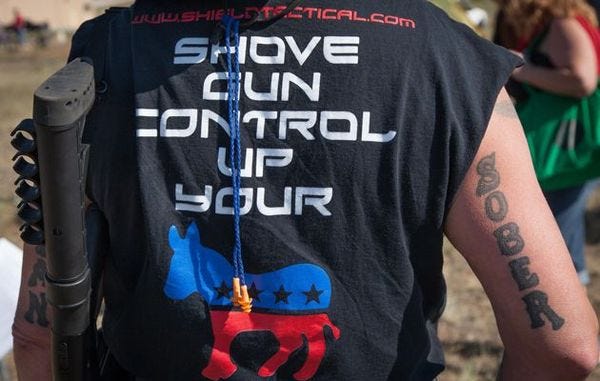 Because yes, in a fight about guns, let us not forget how high the Koch Bros taxes are and also, fuck Obamacare. As some guy said, "It's not just necessarily for the gun votes, although it is important to be able to have as much ammunition in a gun as you want," Republican Jay Benson said as he voted for the recall. "I really didn't like the elections bill (Morse) helped pass." So who the hell knows what these people were doing all of this for?