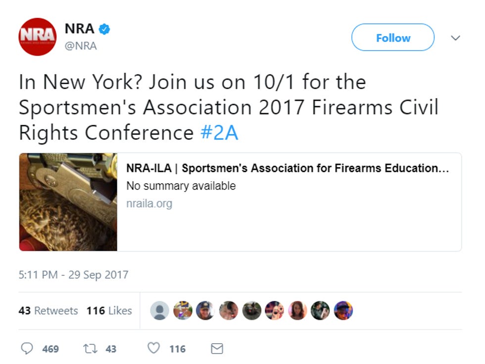 NRA To Las Vegas Shooting Victims: SEE YOU NEXT TUESDAY!