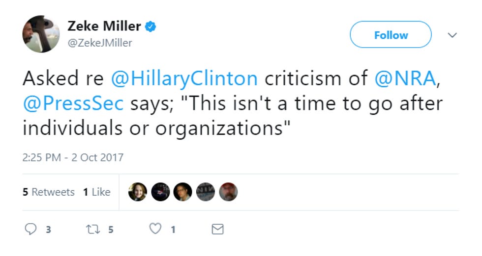 While the NRA itself may be staying silent, its political pimps are out there making their noises. NRA asshole spokesperson Dana Loesch is yelling at Hillary Clinton on Twitter for DARING to suggest the NRA shares a lot of the blame, and she's also retweeting all the hateful things people are saying about her, replying "God bless" to each and every one. How gracious of her.