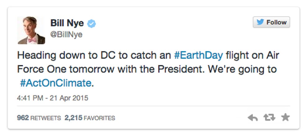 The White House has a whole fun-filled day of fucking with Republicans, with hashtags and pretty pictures and "what you can do" links and celebrity scientists who reallyareA Scientist, planned for Earth Day.