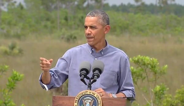 It might be illegal to say "CLIMATE CHANGE" in Florida, but that's not stopping President Obama from going there to say "CLIMATE CHANGE" a whole bunch of times, for Earth Day. Oh, does that make it awkward for you, Florida? And for all you Floridian Republicans -- Gov. Rick Scott, former Gov. Jeb Bush, Sen. Marco Rubio -- who are like, "Meh, Bible says nuh uh, no THOSE WORDS here"? Too bad, so sad, CLIMATE CHANGE.