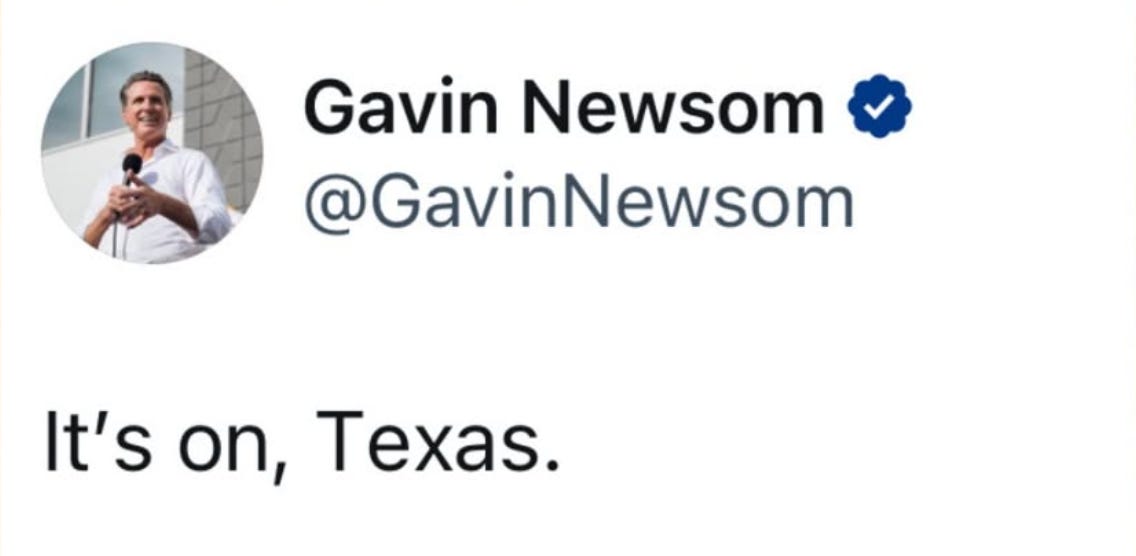 Meanwhile, that’s Newsom signaling that they’re going forward in California with their initiative to use the voting might of California, which is significantly larger than Texas, to counteract what Texas’s maps will do. Of course, in California, it’s being put to the people, whether to temporarily abandon all principles of fairness in districting and pass some ratfucked maps that help Democrats. As it happens, polling shows the people are into it.