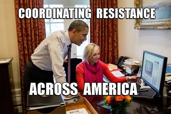 Trump was on teevee with some beautiful Aryan folks this morning and said he doesn't think he's a racist, and that Obama is behind the #Resistance movement, secretly pulling our puppet strings from the safety of his Black White House.