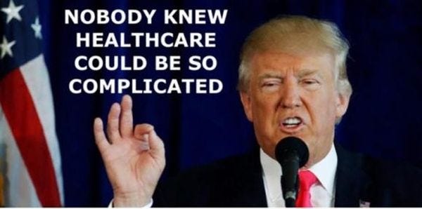 Let's see, now, what did our great president say about his great replacement for the terrible ACA?